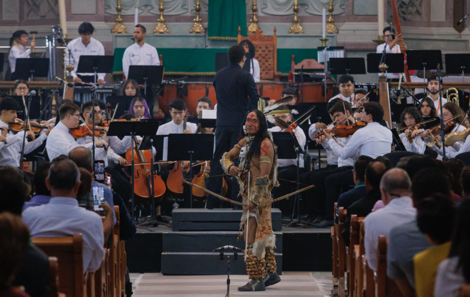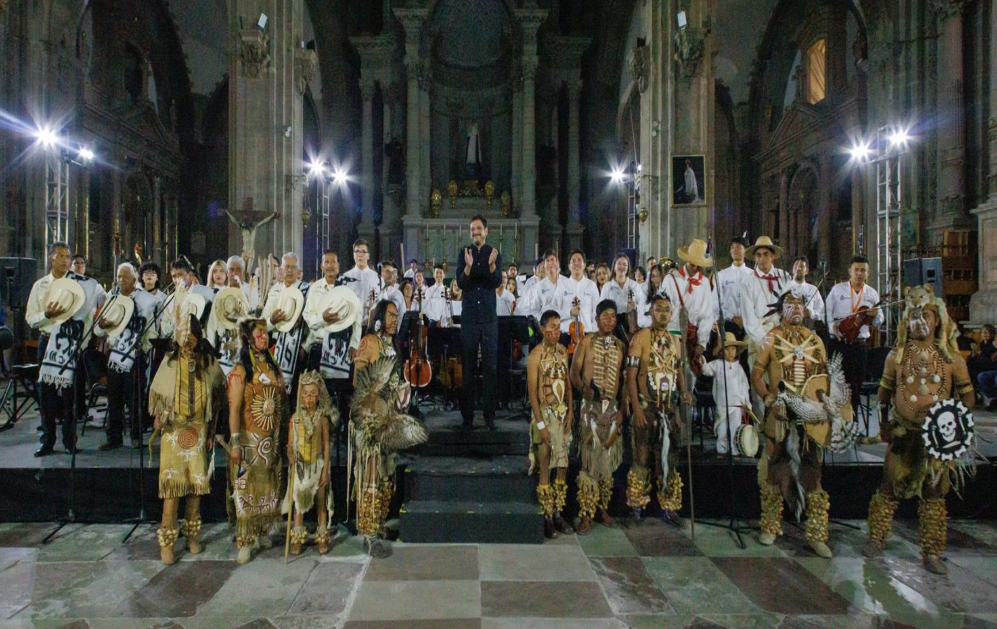 Así fue la esencia del espectáculo del Concierto de las Sonoridades Rituales, representado en el San Felipe Neri -de la Compañía de Jesús-, con la Orquesta Sinfónica Juvenil Vientos Musicales, junto a Los Tunditos de Dr. Mora, los Danzantes Éza’r de San Luis de la Paz y los Alabanceros de San Felipe.
