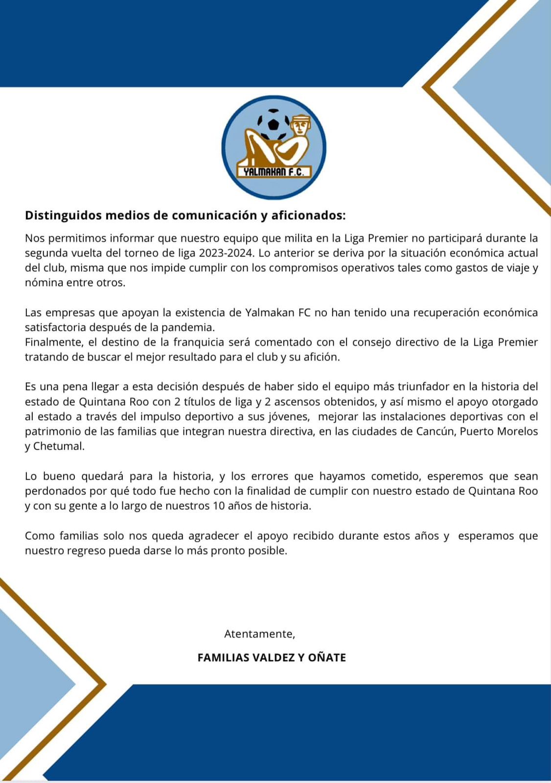 La situación desconcertó a los aficionados quienes se hicieron presentes a través de redes sociales llamando a la Liga Premier Mx como una liga “llanera” ya que anteriormente el equipo de Yalmakan F. C anunció mediante un comunicado oficial que no participaría en la segunda vuelta por problemas económicos y ahora pasa esta nueva situación.