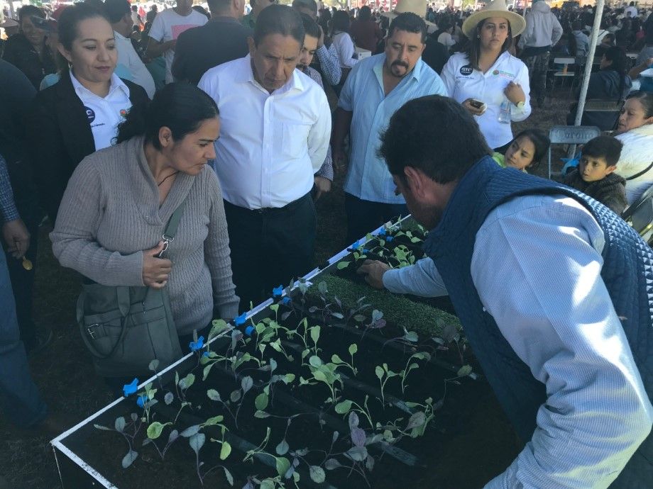 Posteriormente en las instalaciones de la Feria se realizó un recorrido por los diferentes stads, encabezado por el Secretario de Desarrollo Agroalimentario y Rural, José Francisco Gutiérrez Michel, donde conocieron los proyectos productivos que se realizaron para beneficio de las familias y las comunidades beneficiadas.