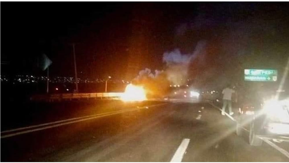 Debido a la fuerza del impacto, el camión de carga perdió un eje trasero y terminó saliéndose de la carretera. La camioneta terminó incendiándose sobre la carretera, que por la hora solo se podía apreciar la llamarada.