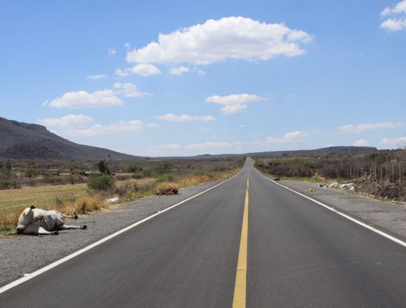 Manuel Doblado, Guanajuato.- Desde hace semanas en la carretera federal 84 en el tramo de Cuerámaro a Manuel Doblado han aparecido varios animales muertos, se desconoce cómo es que los cadáveres de vacas y perros llegan a este lugar, al igual que la causa de sus muertes.