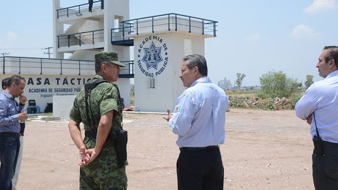 Irapuato, Gto.- El Presidente Municipal Ricardo Ortiz Gutiérrez junto al General Brigadier de la XVI Zona Militar Arturo Velázquez Bravo, se reunieron para observar el trabajo de entrenamiento que llevan a cabo los Grupos Especiales de Policía Municipal, además de reconocer la labor de las Fuerzas de Reacción Inmediata (FRIM) en reducir delitos en la ciudad.
