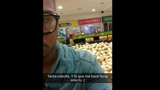 Dicha imagen que subió a Snapchat tuvo un texto que iba acorde a la ocasión: “Tanta cebolla y la que me hizo llorar eres tu”, se puede leer en la foto que es solo una de tantas que compartió este joven.
