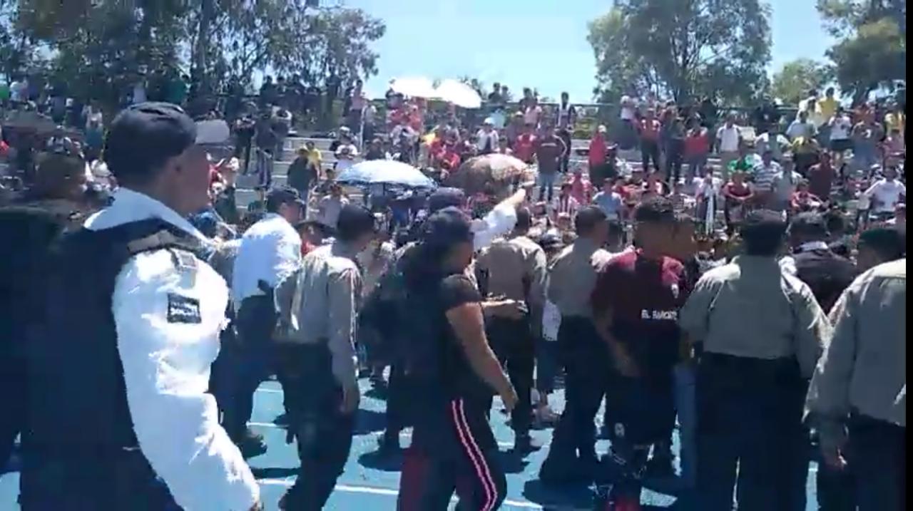 Cadetes y Elementos de Seguridad Ciudadana fueron quienes detuvieron este zafarrancho donde se calentaron los ánimos por los jugadores y porras de ambos los equipos.