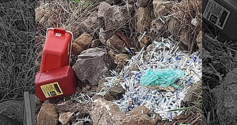 Mediante una denuncia anónima a este medio de comunicación, se dio a conocer el tiradero de residuos biológicos infecciosos ubicados en justamente en las faldas del cerro, donde la denunciante expone el peligro latente que existe en ese lugar si alguien llegara a pincharse por accidente con esas agujas usadas que al parecer son de la vacunación por Covid-19.