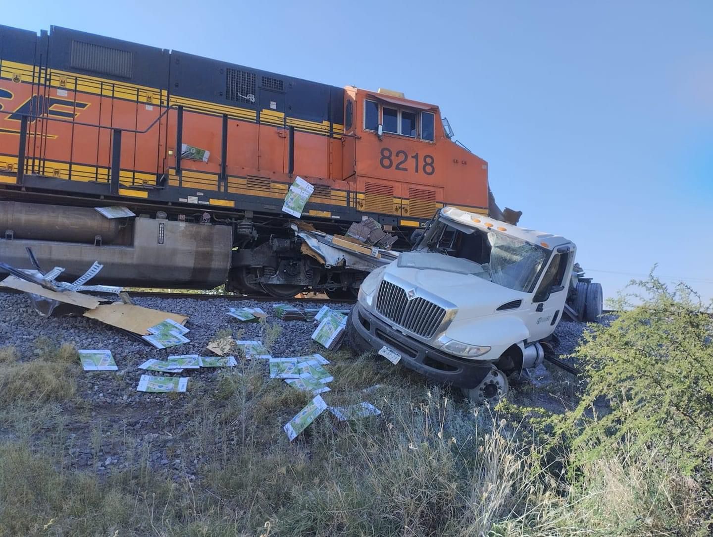 El chofer de un camión de carga de caja seca, el cual transportaba cajas de cartón para la tequilera al parecer habría intentado ganarle el paso al tren, situación que originó que se impactara y la unidad de motor fuera arrastrada varios metros.