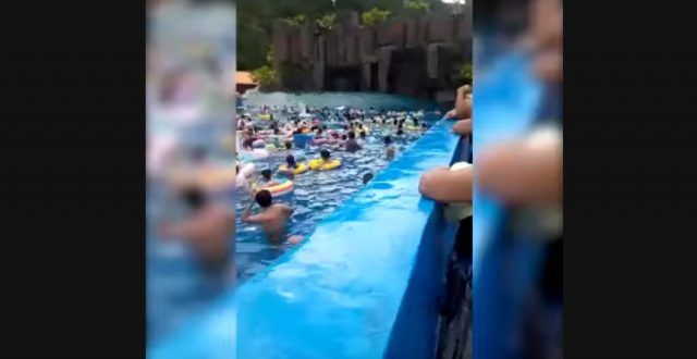 Este incidente tuvo lugar en el parque acuático Yulong Shuiyung, ubicado en la ciudad de Longjing, donde una falla en una alberca provocó olas más grandes de lo normal.