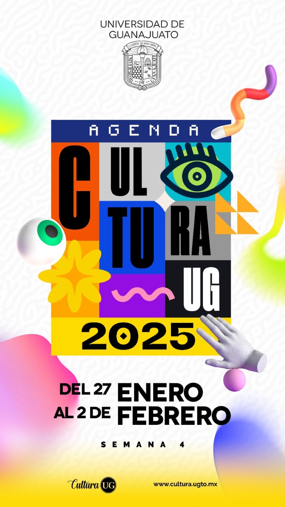 Guanajuato, Gto.- La Universidad de Guanajuato (UG), a través de la Dirección de Extensión Cultural, está lista para dar a conocer la oferta artística y cultural 2025. La programación se dará a conocer el próximo 31 de enero a las 11:00 horas en el Mesón de San Antonio, y se transmitirá en el Facebook @CulturaUG.