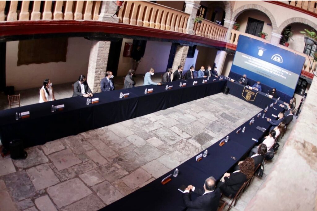 Autoridades de la Universidad de Guanajuato (UG) y la Universidad Autónoma Metropolitana (UAM) llevaron a cabo la firma de un convenio de colaboración para fundar la Cátedra Interinstitucional sobre el Quehacer Universitario, proyecto que se enmarca en el Centro de Estudios sobre la Universidad de la UG.