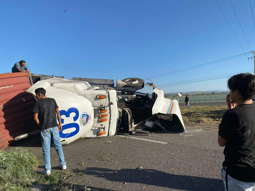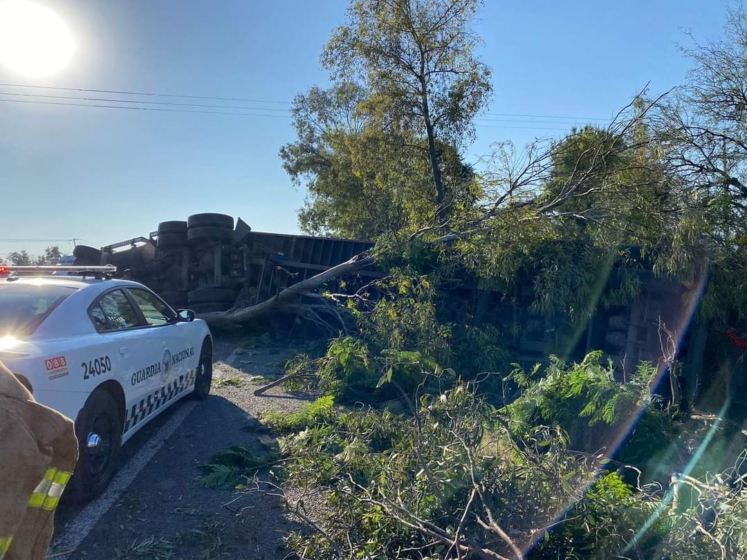 Abasolo, Guanajuato. En la carretera federal Abasolo – Pénjamo se volcó un tráiler derribando una casa a la altura de la comunidad de San Vicente de Caño.